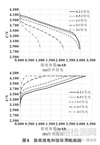 為進(jìn)一步考察硅碳復(fù)合材料的性能,進(jìn)行疊片小軟包電池 408595 制作。正極采用 NCM811(湖南產(chǎn),電池級(jí)),負(fù)極石墨摻 8% 的硅碳材料。正極漿料配方為 96%NCM811、1.2% 聚偏氟乙烯(PVDF)、2% 導(dǎo)電劑SP,0.8%CNT,采用 NMP為分散劑;負(fù)極漿料配方為 96% 的復(fù)合負(fù)極材料、1.3%CMC、1.5%SBR 1.2%CNT,采用水為分散劑。經(jīng)攪拌、涂布、輥壓、裁切、疊片、極耳焊接、封裝、烘烤、注液、化成和分容,制備得到 408595 疊片小軟包電池,額定容量均為 3 Ah。進(jìn)行 0.2C、0.5C、1C、2C 和 3C 的倍率性能和 0.5C 充 1C 放的循環(huán)性能測試,充放電電壓范圍為 2.8~4.2 V,恒流恒壓充電,截止電流為0.5C。