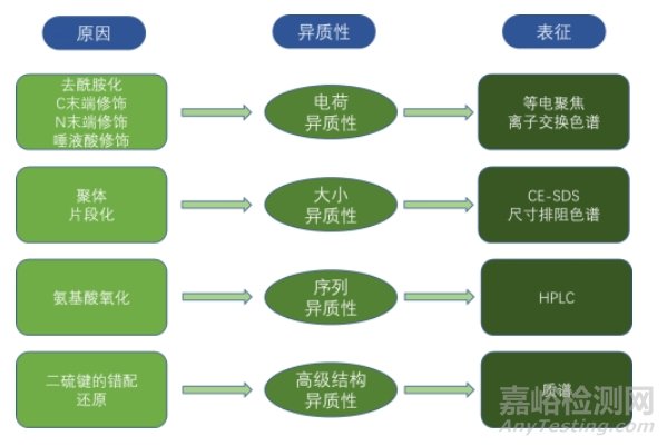 圖1 抗體藥物異質(zhì)性的原因及表征方法
