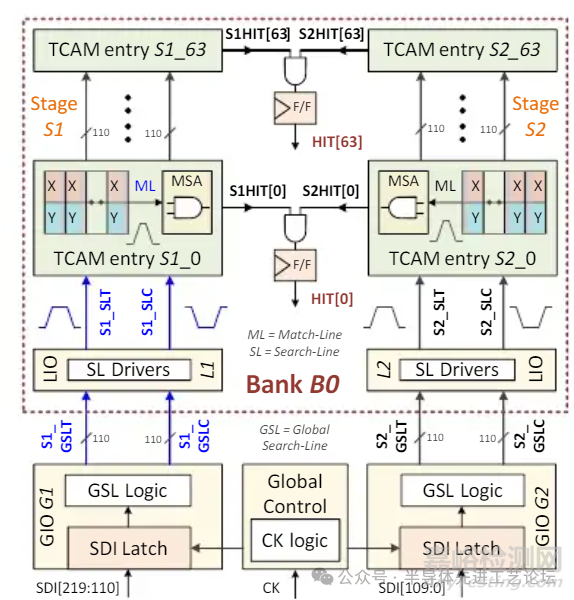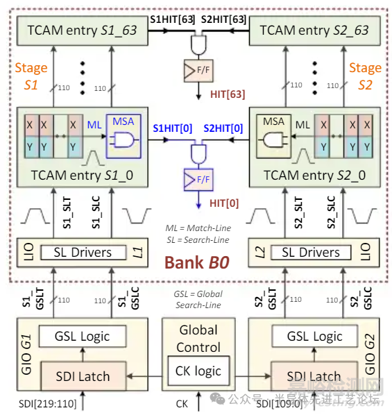 基準(zhǔn)TCAM 特性:S1和S2并行工作(兩級(jí)比較電路同時(shí)運(yùn)行以提升吞吐率)