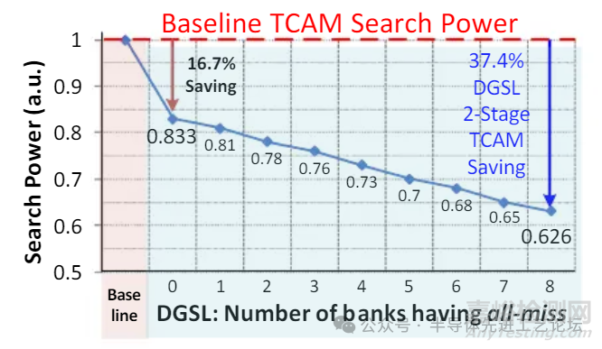 ML(匹配線)功耗節(jié)省: 較基線降低16.7%