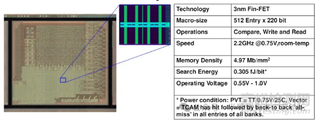 本文是聯(lián)發(fā)科(MediaTek)存儲(chǔ)器電路設(shè)計(jì)專家Sushil Kumar在2025年第72屆國(guó)際固態(tài)電路會(huì)議(ISSCC)SRAM專題會(huì)議上發(fā)表的題為《A 3nm FinFET 2.2Gsearch/s 0.305fJ/b TCAM with Dynamically Gated Search Lines for Data-Center ASICs》的演講,闡述了聯(lián)發(fā)科新研發(fā)的一款采用3納米Fin-FET工藝的TCAM存儲(chǔ)器,該存儲(chǔ)器設(shè)計(jì)創(chuàng)新性地引入了動(dòng)態(tài)門控搜索線技術(shù),專為數(shù)據(jù)中心專用集成電路(ASIC)打造。