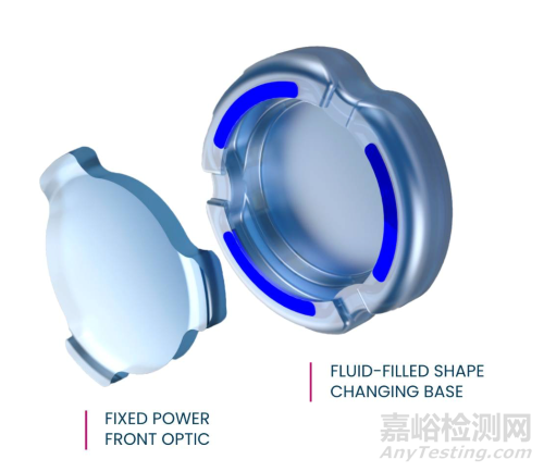 它不同于傳統(tǒng)的固定式光學元件,而是采用一種“可變形”的設(shè)計結(jié)構(gòu):后段為可充液、可變形的底座,前段為高光學質(zhì)量的固定鏡片。