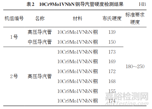 2.導(dǎo)汽管彎管外弧面局部硬度偏低