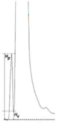 式中:Hp為小峰平行外推基線的高度;Hv為小峰和大峰間曲線最低點(diǎn)平行外推基線的高度。 |