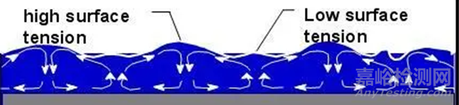 錘紋的形成,離不開三個重要的因素:混合溶劑揮發(fā)的不平衡(馬蘭格尼效應(yīng));貝納德漩渦;表面張力的作用。