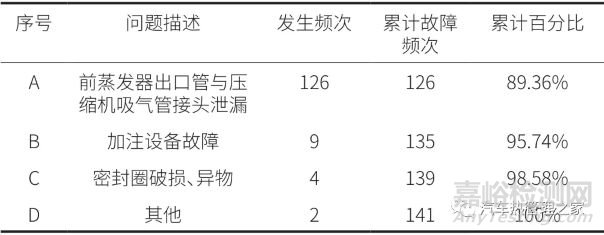 表2 冷媒加注失敗統(tǒng)計(jì)分析