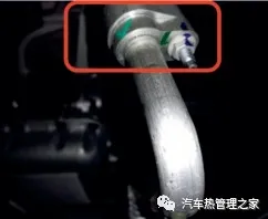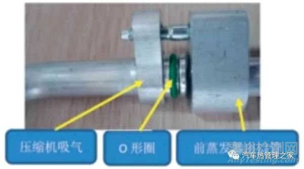 圖1 某車型前蒸發(fā)器出口管與壓縮機(jī)吸氣管接頭泄漏