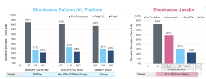 Javelin IVL的有效性也被證明與傳統(tǒng)的球囊設(shè)計(jì)一致,且具有相似的直徑狹窄縮小