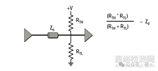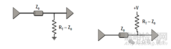 •戴維南(Thevenin)端接即分壓器型端接,它采用上拉電阻R1和下拉電阻R2構成端接電阻,通過R1和R2吸收反射,此端接通常是為了獲得最快的電路性能和驅動分布負載而采用的