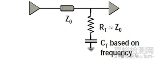 R要≤傳輸線阻抗Z0,電容C 必須大于100pF,推薦使用0.1uF 的多層陶瓷電容。電容有阻低頻通高頻的作