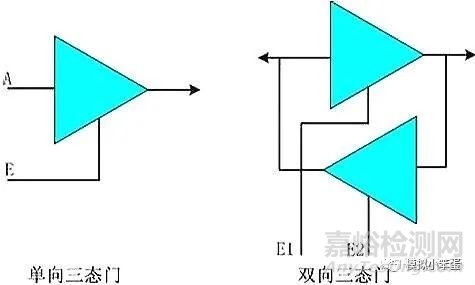 第三種是三態(tài)輸出結(jié)構(gòu)。如下圖所示,相對(duì)于一般門(mén)只有0和1兩種狀態(tài),三態(tài)門(mén)多出了一個(gè)高阻狀態(tài)。同時(shí),三態(tài)門(mén)還有單向三態(tài)門(mén)和雙向三態(tài)門(mén)之分。