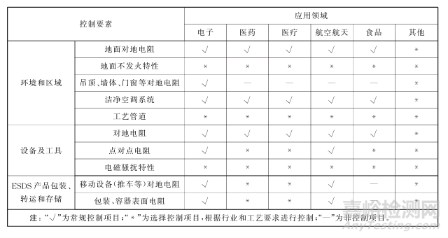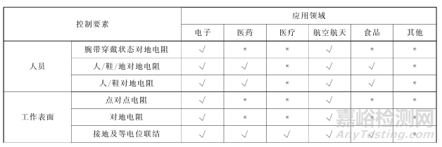 不同應(yīng)用領(lǐng)域潔凈室靜電控制要素見表A.2。