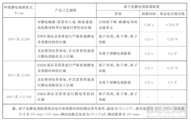潔凈室EPA 內(nèi)使用的離子化靜電消除設(shè)備性能指標(biāo)見表B.3。