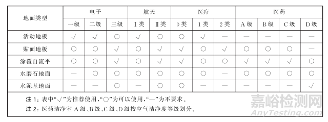 防靜電地面類型選用見表C.1 ,其他領(lǐng)域潔凈室防靜電地面類型參考選用。