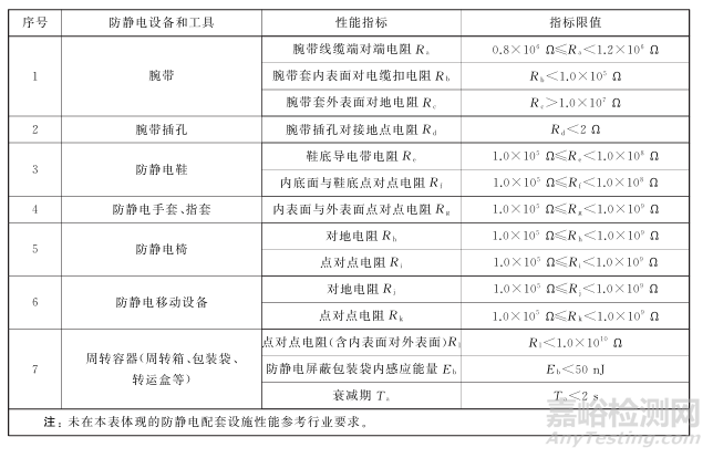 表 E.1 潔凈室 EPA 區(qū)域常見防靜電設(shè)備和工具性能指標(biāo)