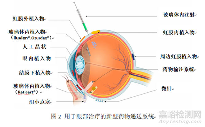 眼部結(jié)構(gòu)復(fù)雜,其獨特的解剖和生理屏障給治療帶來了一定的機遇和挑戰(zhàn),眼前段疾病的局部滴眼劑由于受淚液清除、角膜屏障影響,導(dǎo)致生物利用度低、患者依從性差;眼后段疾病的玻璃體內(nèi)注射治療方式屬于有創(chuàng)操作,存在視網(wǎng)膜脫離、眼內(nèi)炎癥等風(fēng)險。為解決上述問題,需在制劑處方和給藥技術(shù)上進行創(chuàng)新,
