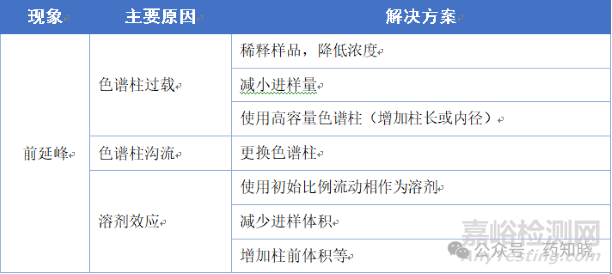 產(chǎn)生原因:溶劑洗脫能力比流動(dòng)相強(qiáng),導(dǎo)致部分組分先流出。