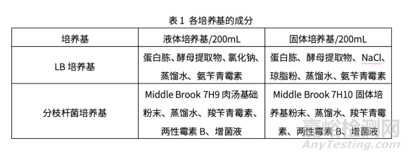 (1)培養(yǎng)基準(zhǔn)備:LB培養(yǎng)基(大腸桿菌)、Middle brook培養(yǎng)基(鳥(niǎo)分枝桿菌)