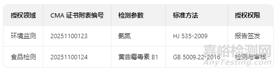 示例:“授權簽字人 XXX 可簽發(fā)‘水質化學需氧量(COD)檢測’(依據 HJ 828-2017)的檢驗檢測報告。”