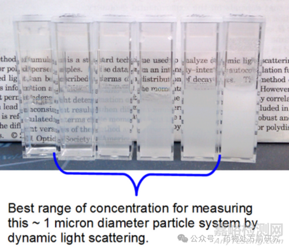 以下是針對(duì)兩種大小顆粒系統(tǒng)的研究結(jié)果。一種顆粒的平均尺寸約為1000納米,另一種顆粒的平均尺寸約為36納米(真正的納米顆粒)。下面展示了懸浮液在樣品池中的照片,以展示外觀良好的懸浮液是什么樣的。這些照片可用于指導(dǎo)目測(cè)法的實(shí)施。同時(shí)還展示了濃度研究的結(jié)果,以演示如何實(shí)施此類研究。
