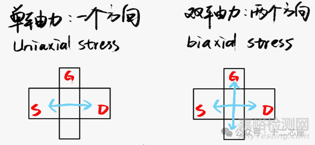 Fig2. Uniaxial stress: 1-direction(left); biaxial stress: 2-directions(right)