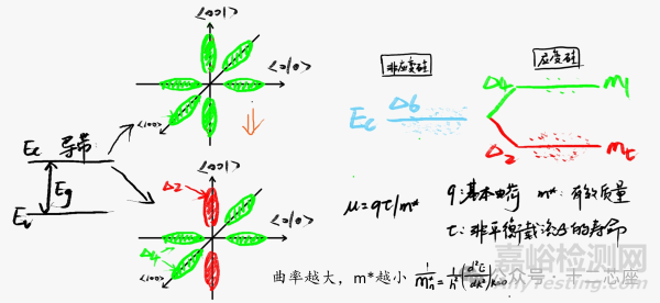 電子遷移率和有效質(zhì)量的關(guān)系如下,綜合ml和mt,電子有效質(zhì)量降低導(dǎo)致電子遷移率增加。