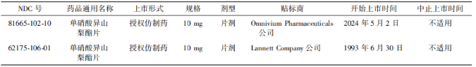 ▲表3-單硝酸異山梨酯片(10mg)RLD的NDC目錄檢索結(jié)果
