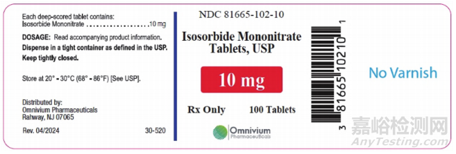 ▲圖2-Omnivium Pharmaceuticals 公司授權(quán)仿制藥單硝酸異山梨酯片的上市包裝圖