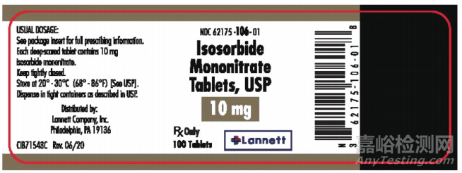 ▲圖3-Lannett Company 公司授權(quán)仿制藥單硝酸異山梨酯片的上市包裝圖