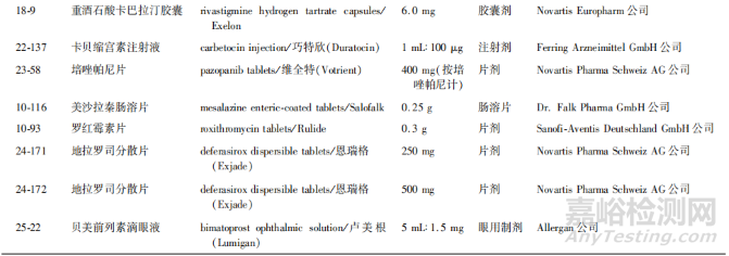 GMP是從事藥品生產(chǎn)和質(zhì)量管理的基本準(zhǔn)則,只有在符合GMP的條件下生產(chǎn)的藥品才可以上市銷售。RLD生產(chǎn)企業(yè)的GMP符合狀態(tài)是判斷和確定其產(chǎn)品質(zhì)量和可及性的重要依據(jù)和保證[13]。我國(guó)仿制藥RLD目錄中收錄的RLD也可能由于生產(chǎn)企業(yè)違反GMP的要求而被停止銷售,從而影響其市場(chǎng)可及性。根據(jù)2017年以來我國(guó)發(fā)布的不符合c檢查公告的情況,對(duì)可能受到影響的RLD進(jìn)行了匯總,見表6。