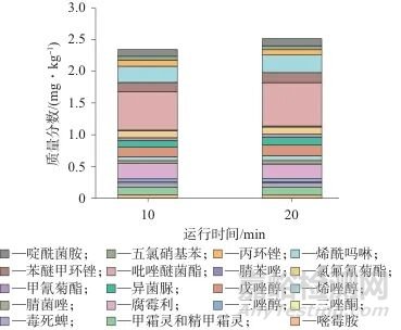 圖3   三七樣品中19種農(nóng)藥殘留測(cè)定結(jié)果對(duì)比圖