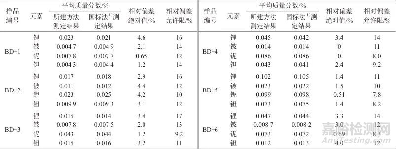 注:1) DZ/T 0453.2—2023《鈮鉭礦石化學(xué)分析方法 第2部分:鋰、銣、鈹、鎳、銅、鋅、鈮、鉭、鎢和憶元素含量的測(cè)定 封閉酸溶-電感耦合等離子體質(zhì)譜法》