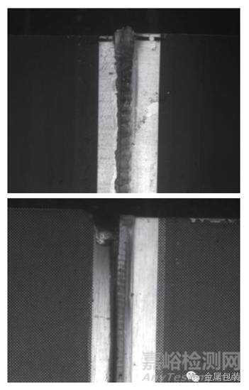 圖2 合格產品(上)與不合格產品(下)焊縫兩端部分