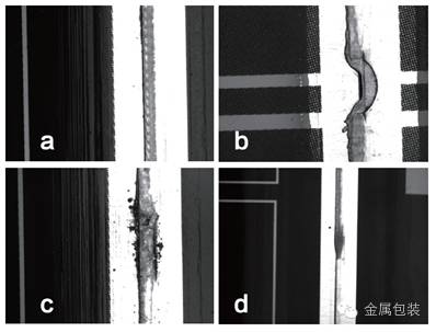 圖1 合格產品(a)與不合格產品(b,c,d)焊縫中間部分
