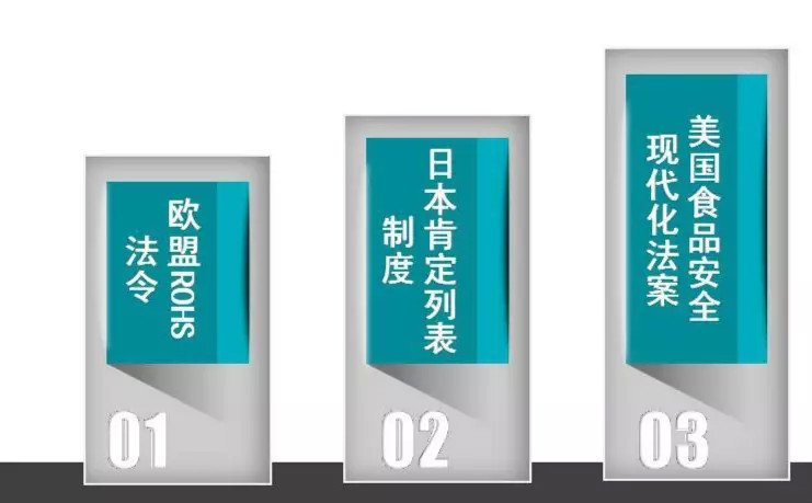 金融危機(jī)前出臺的歐盟RoHS法令、日本肯定列表制度,金融危機(jī)后出籠的美國食品安全現(xiàn)代化法案等等,都有認(rèn)證檢測壁壘。