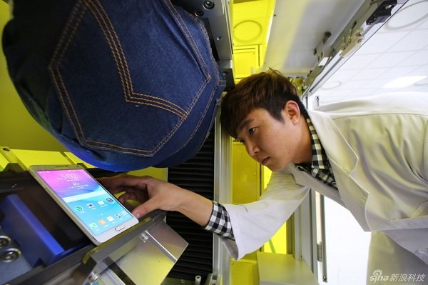 近日記者走訪韓國三星總部,對神秘的三星手機測試實驗室一探究竟,這里不僅有專業(yè)天線及音頻測試室,還有包括屏幕抗壓、機身扭曲、靜電以及按鍵耐久度等多項測試。