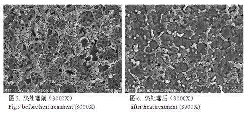 圖5是客戶熱處理前樣件3000X電鏡圖片,在晶界析出片狀組織為共析組織;而圖6,同樣3000X下觀察188°C x 12h時效處理后的組織,已看不到片狀共析組織。晶界白色顆粒聚集長大。