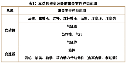 3.1 發(fā)動機(jī)、變速器總成的主要零件種類范圍