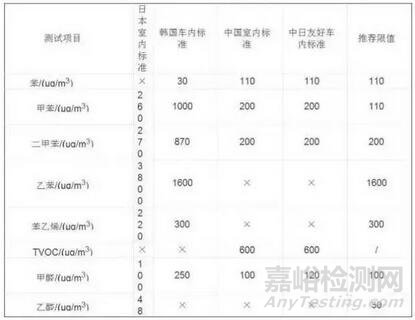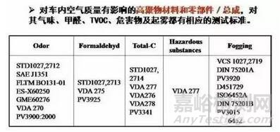 目前,國內(nèi)及歐、美、日均沒有汽車車內(nèi)空氣質(zhì)量的國家標準、法規(guī)。但有資料表明,國外主要汽車公司對于車內(nèi)空氣質(zhì)量的控制,主要通過對配套零部件的管控來實現(xiàn)的。