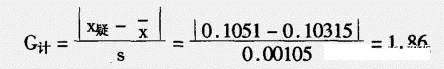 首先算得X平均=0.10315, S=0.00105 (均保留一位安全數(shù)字),可以數(shù)據(jù)的格魯布斯G計(jì)