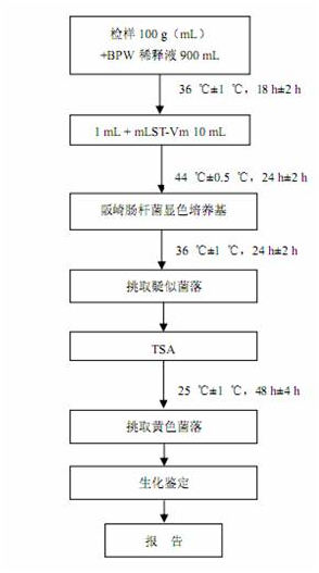 阪崎腸桿菌檢驗(yàn)程序見(jiàn)圖 1。