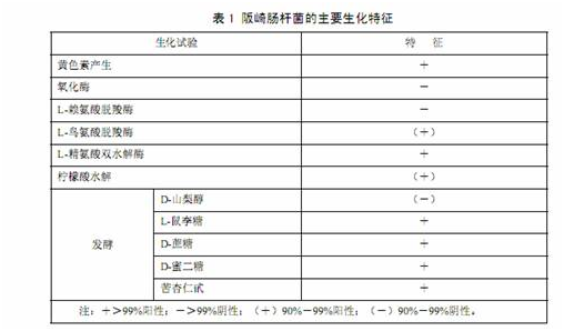 自 TSA 平板上直接挑取黃色可疑菌落,進(jìn)行生化鑒定。阪崎腸桿菌的主要生化特征見(jiàn)表 1。可選擇生化鑒定試劑盒或全自動(dòng)微生物生化鑒定系統(tǒng)。
