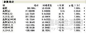 簡(jiǎn)要地查看輸出報(bào)告中的"參數(shù)估計(jì)"表,發(fā)現(xiàn)所有的 p 值都小于 0.05,表明所有的模型效應(yīng),包括一次主因子作用、二次主因子作用和雙因子交互作用,均是顯著的。