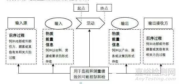 過程的各要素及其相互作用如圖 所示。每一過程均有特定的監(jiān)視和測量檢查點(diǎn),以用于控制,這些檢查點(diǎn)根據(jù)不同的風(fēng)險有所不同。