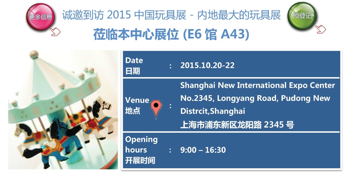 Visit Us at China Toy Expo 2015 - Largest Toy Fair in China (Booth No.: Hall E6, A43)