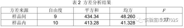 7)用單因子方差分析法對檢驗中的結果進行統(tǒng)計處理。若樣品之間無顯著性差異,則表明樣品是均勻的。