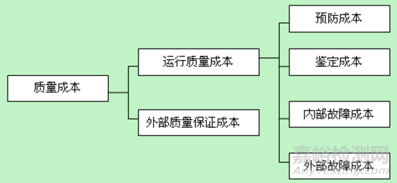 質(zhì)量成本是由兩部分構(gòu)成的,即運(yùn)行質(zhì)量成本和外部質(zhì)量保證成本。而運(yùn)行質(zhì)量成本包括:①預(yù)防成本;②鑒定成本;③內(nèi)部故障成本;④外部故障成本。其構(gòu)成如圖1所示。