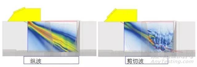 縱波(LW)和剪切波(SW)穿過奧氏體焊縫材料的對比。