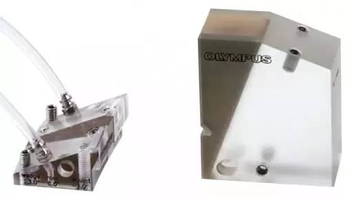 雙晶矩陣相控陣探頭(左)和縱波(LW)探頭(右)的楔塊設(shè)計對比