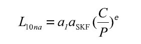 在國際標準ISO 281:1990中也給出了修訂的額定壽命計算式: